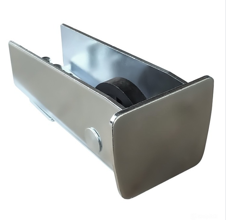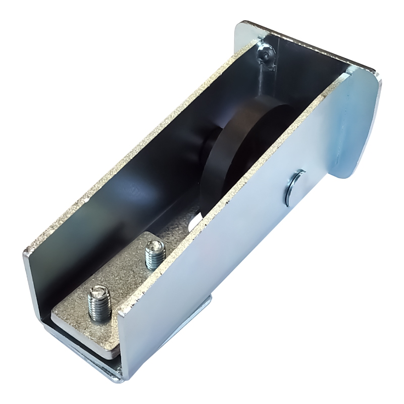 Устанавливается в один из торцов направляющей балки откатных ворот. Создает дополнительную опору совместно с ловителем нижним. Служит также одной из заглушек для направляющей. В закрытом положении контактирует с нижним ловителем. В конструкции предусмотрен пластиковый ролик. Вес 0,6 кг. Габариты: 145x70x68 мм.